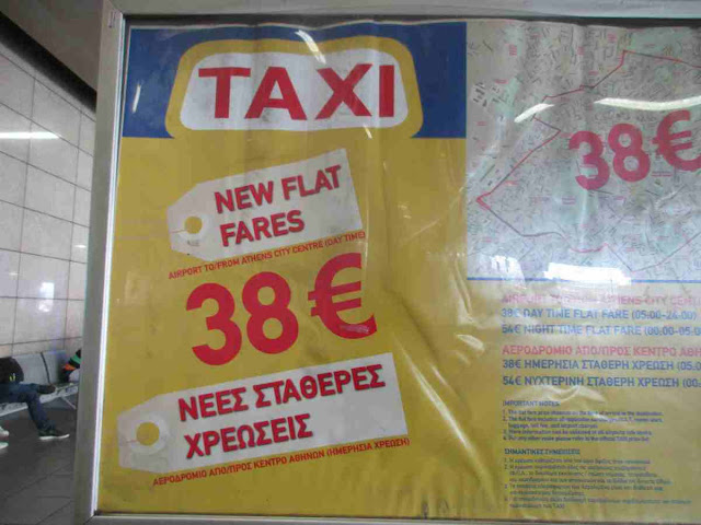We collected our checked bags. Took a picture of the sign that says 38 euro fixed rate for taxis... to show to taxi driver in case of disputes