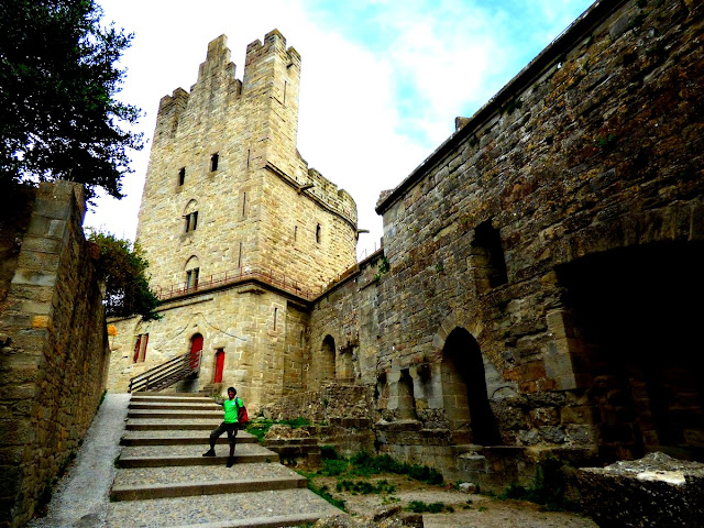 ancient ramparts. The double circuit of defensive walls features machicolations, slits for arrows,
