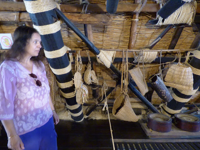 In the multi-level attic, displays of tools and equipment illustrate how the roof of the house is thatched, we can also get a close look at the inside of the roof structure, which is secured using only straw rope and bindings (neso) made of witch hazel saplings.