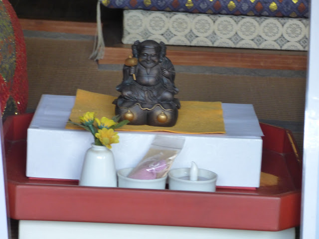 This is Tanuki, the tipsy trickster ferret dog. It's kept in entrances for good luck